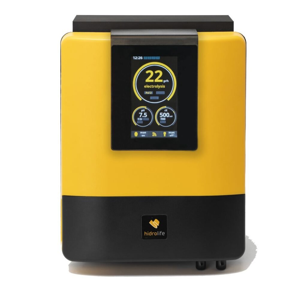 HIDROLIFE genera automáticamente el desinfectante hipoclorito sódico a base de agua ligeramente salada (más de 3g de sal/litro). Puede funcionar tanto si no hay suficiente sal como si hay sal en exceso, incluso con agua de mar. Genera cloro a partir de la sal común disuelta en el agua de la piscina. Sustituye la compra y manipulación de productos químicos para esterilizar el agua y acaba con los malos olores causados por las cloraminas. Garantiza un baño más saludable y placentero