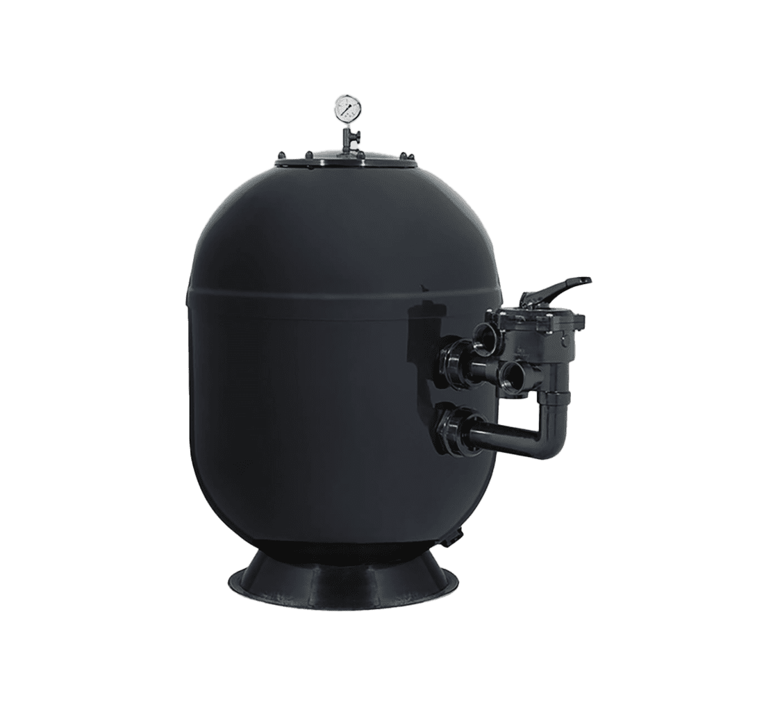 Filtro laminado para piscina privada, fabricado con estándares industriales, tanque en fibra de vidrio reforzado, resistente a los rayos UV.